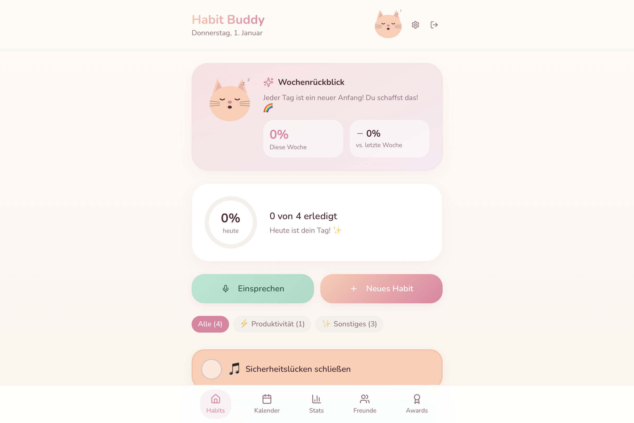 Meine Habit-App HappiBit hat die Besonderheit, das man Habits per Mikrofon einsprechen kann, das macht es wesentlich einfacher und weniger Zeitintensiv.